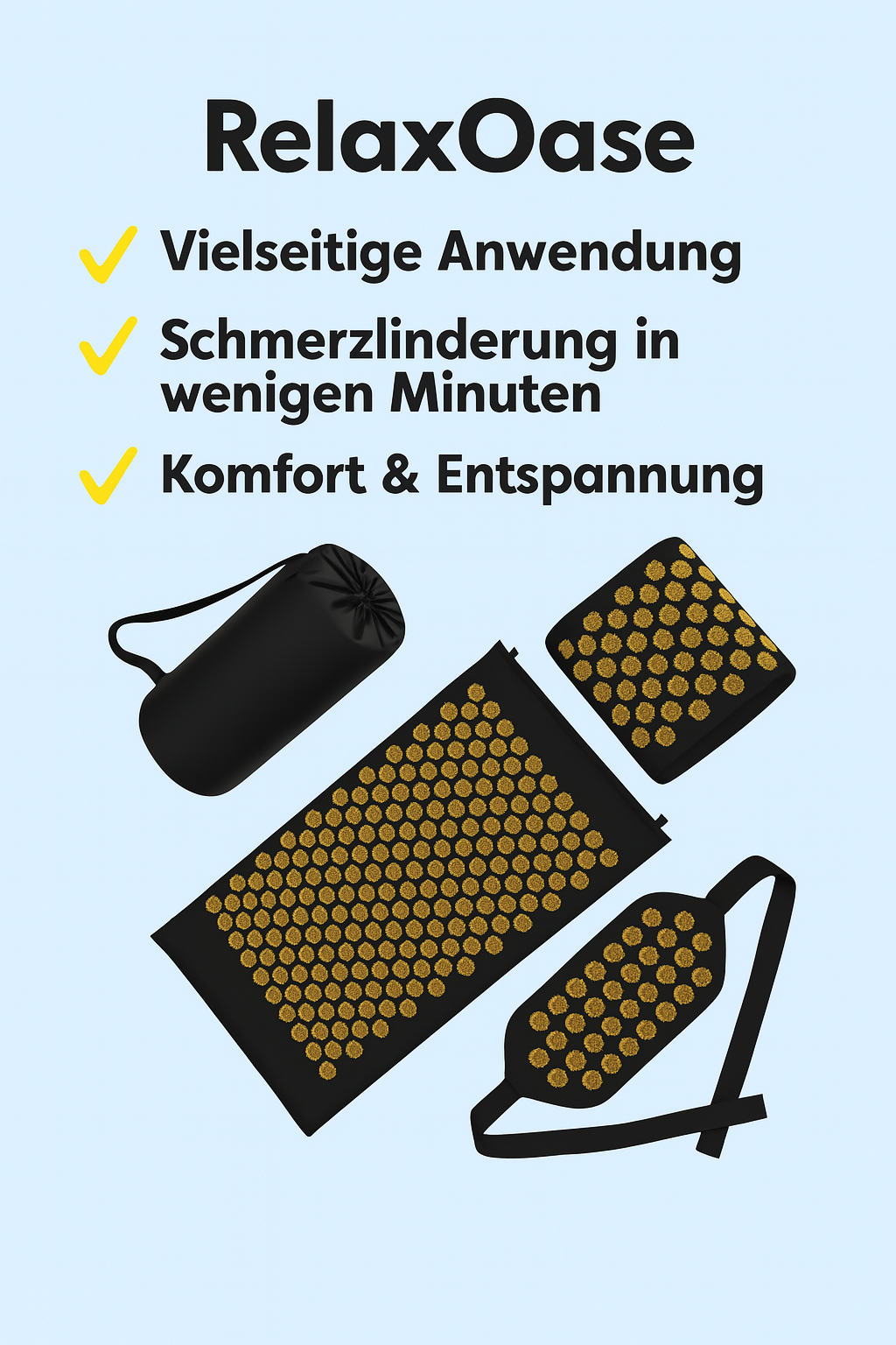 Tauche ein in eine Welt der Ruhe und Erholung mit der RelaxOase – der innovativen Fussmassage-Matte, die dein Wohlbefinden auf ein neues Level hebt. Erlebe eine ganzheitliche Entspannung, die nicht nur deine Füsse, sondern auch deinen gesamten Körper revitalisiert und erfrischt. Ob nach einem langen Arbeitstag, einer intensiven sportlichen Aktivität oder einfach als tägliches Ritual – die RelaxOase hilft dir, Stress abzubauen, Spannungen zu lösen und tief in einen Zustand der Erholung einzutauchen.